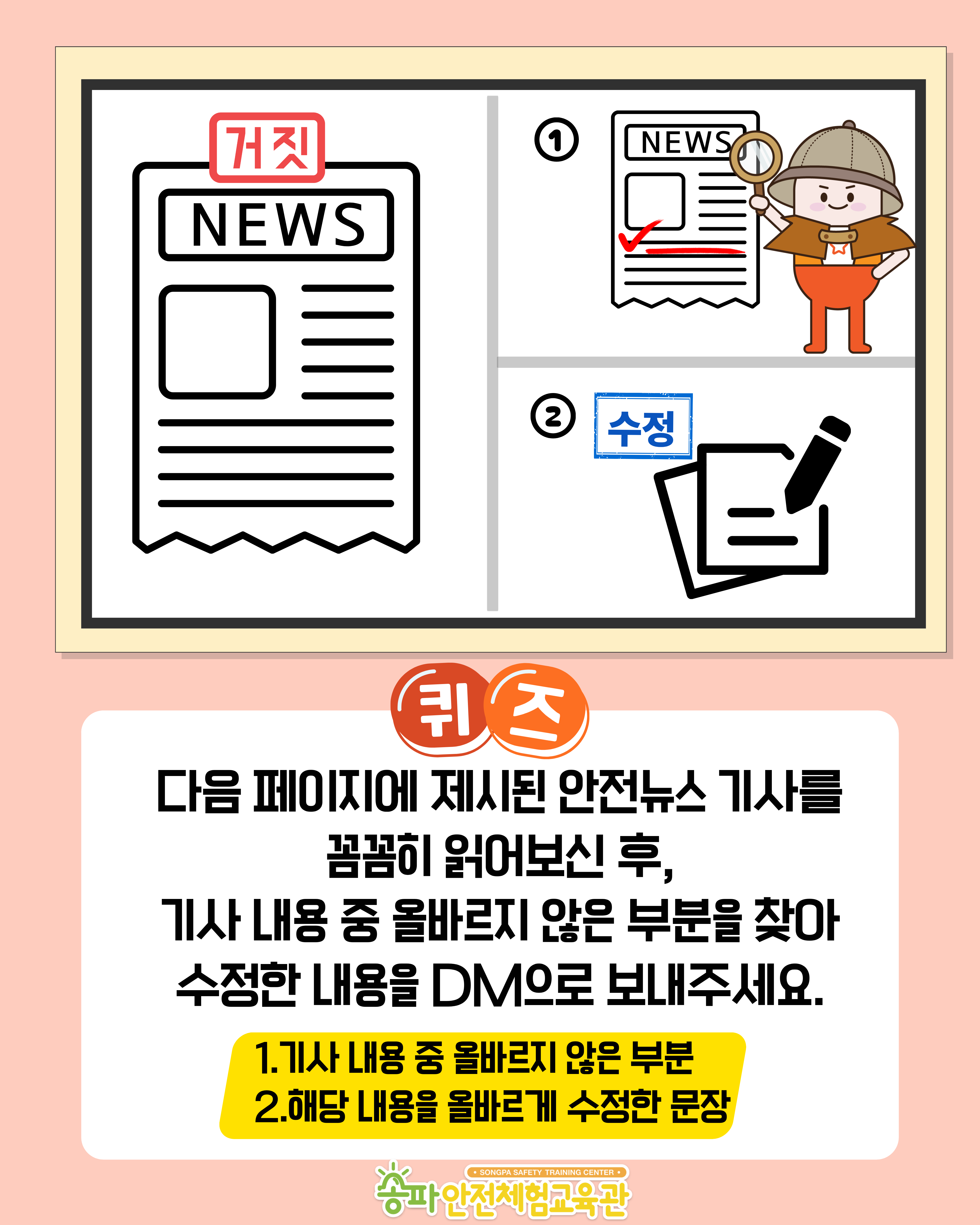 ② 가짜뉴스를 찾아라! 게시물의 정답 인스타그램 메시지(dm)보내기 ex) 정답은 000입니다.